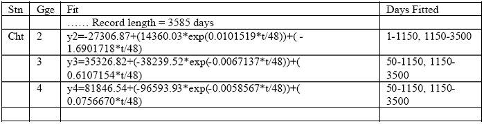 CHT—Chabot—Raw, exponential models, and residual plots for each measured channel are shown for gauge 2, gauge 3, and for gauge 4